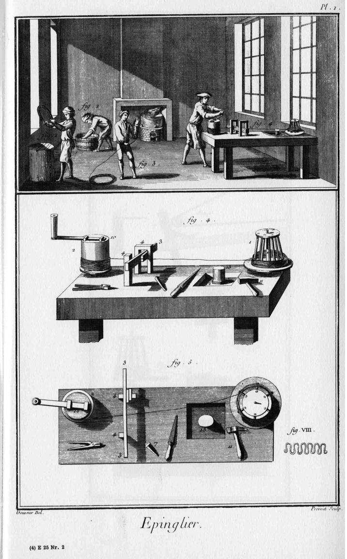 Pin Manufactory (Epinglier) from Diderot and d’Alembert, *Encyclopedie vol. 21.