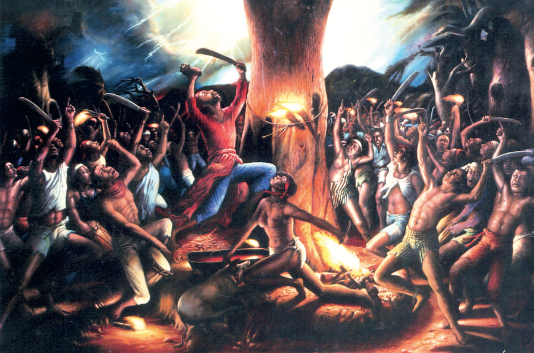 Ulrick Jean -Pierre “Painting entitled Bois Caïman 1,” (Revolution of Saint-Domingue, Haiti, August 14, 1791), 1979. Oil on canvas, 40*60 in