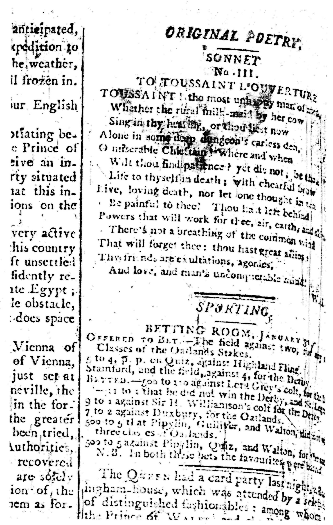 Wordsworth’s sonnet Morning Post, 2 February 1803