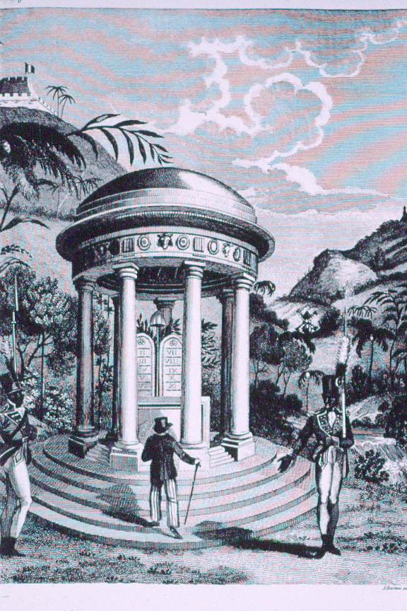 “A Temple erected by the Blacks to commemorate their Emancipation.” Illustration for Marcus Rainsford, An Historical Account of the Black Empire of Hayti (1805). Line engraving by J. Barlow after the author. On Barlow’s work for this book, see Honour, From the American Revolution to World War I, 95.